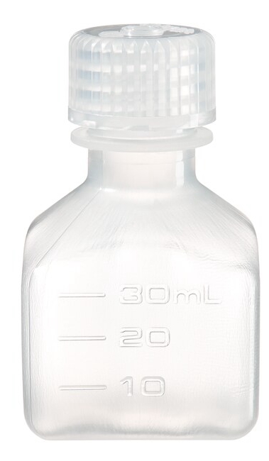 使用 Thermo Scientific™ Nalgene™ 广口方形聚丙烯共聚物瓶的方形设计节省宝贵的实验室空间。
