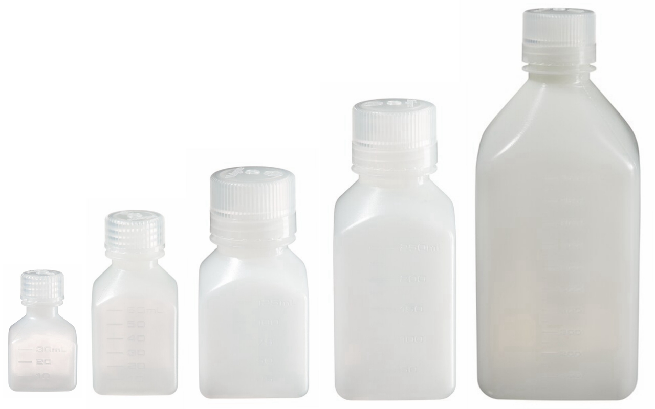 此类聚丙烯共聚物瓶带刻度,可重复进行高压灭菌,半透明且耐醇、耐碱。