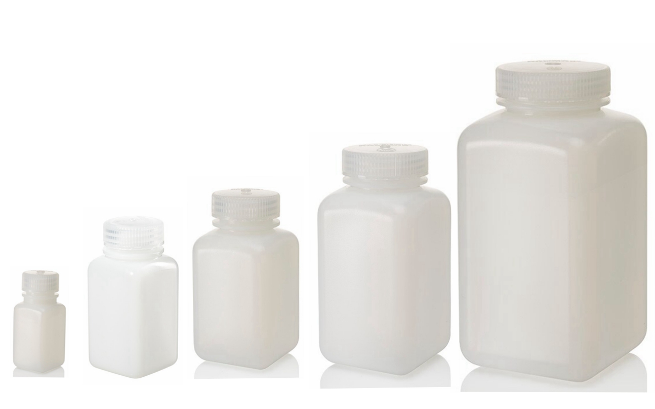 采用 Thermo Scientific™ Nalgene™ HDPE 方形带盖广口大瓶采集、储存和运输干燥化学品和环境样品。